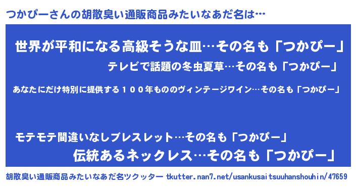| 意味不明あだ名 | 『住所不定無職つかぴー(10歳)』 |