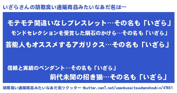 | ヘコむあだ名 | 『いざにゅー』『いざら(笑)』 |