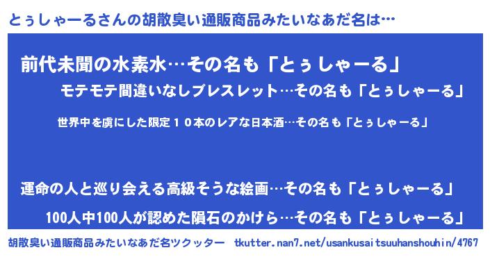 | ヘコむあだ名 | 『とぅしゃーる(爆)』『とぅっふぃ~』 |