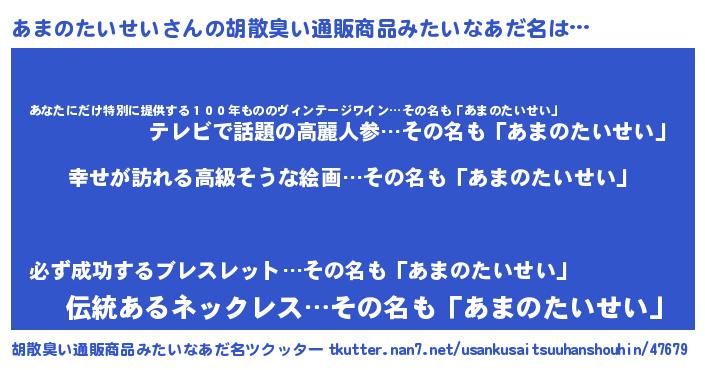 | 意味不明あだ名 | 『あまのたいせいフォーエバー』 |