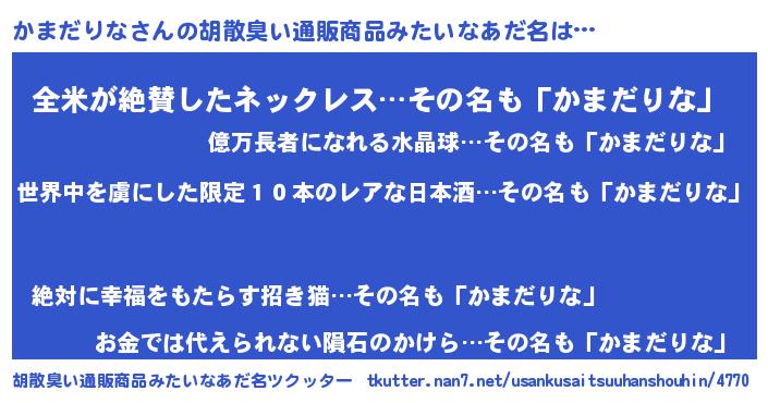かまだりなさんの胡散臭い通販商品みたいなあだ名をツクッター!