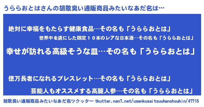 | 肩書あだ名 | 『うららおとは国家主席』 |