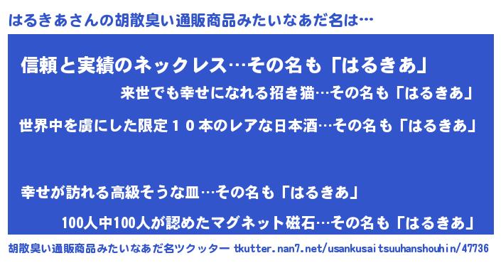 | 肩書あだ名 | 『はるきあディレクター』『はるきあ中将』 |