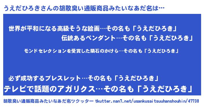 | ヘコむあだ名 | 『酢こんぶ』『うえ太郎』 |