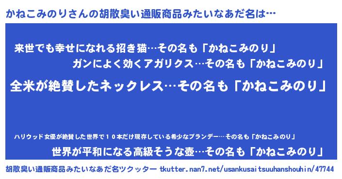 | 意味不明あだ名 | 『とにかく怪しいかねこみのり』 |
