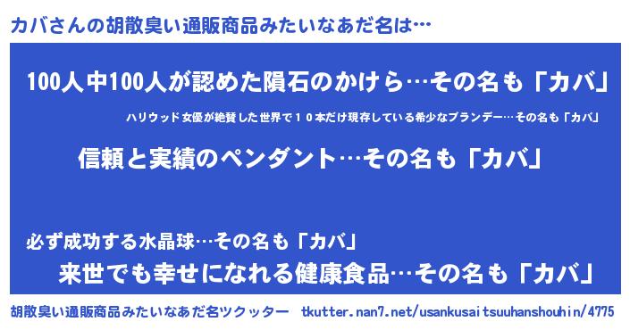 | ヒーロー風カッコイイあだ名 | 『暗黒騎士カバ』『友情の使者カバ』 |