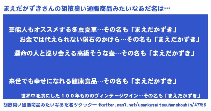 | 意味不明あだ名 | 『まえだかずきフォーエバー』 |