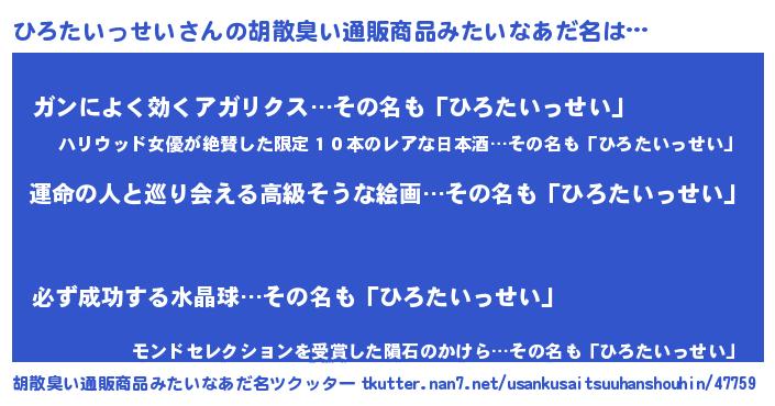 ひろたいっせいさんの胡散臭い通販商品みたいなあだ名をツクッター!