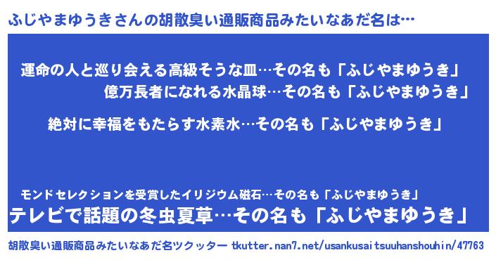 | 意味不明あだ名 | 『永久保存ふじやまゆうき』 |