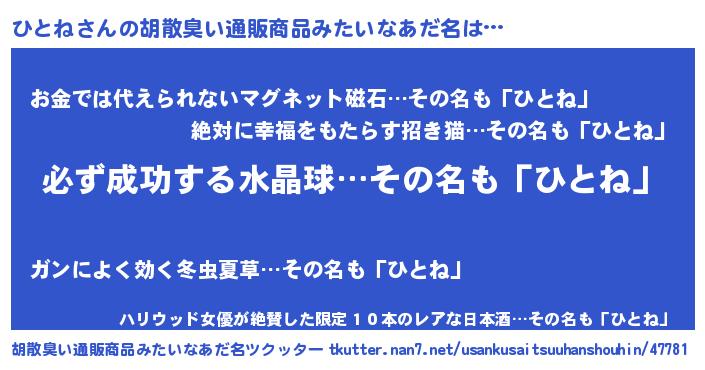 | ヒーロー風カッコイイあだ名 | 『スーパーヒトネ』『愛の使者ひとね』 |