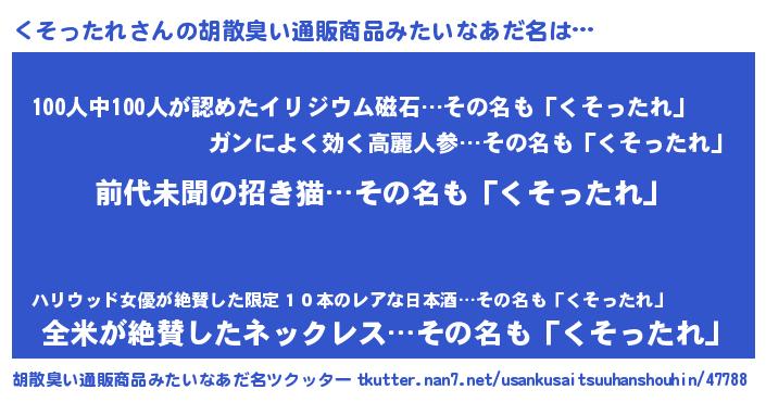 | ヘコむあだ名 | 『くそったれ(小並感)』『くそお』 |