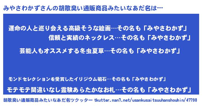 | 意味不明あだ名 | 『自称みやさわかず』 |