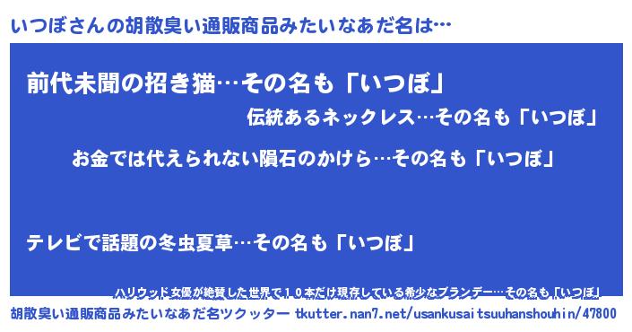 | ヘコむあだ名 | 『いつぼ(遠い目)』『いつっ子』 |