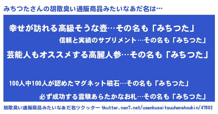 | 意味不明あだ名 | 『自称みちつた』『みちつたフォーエバー』 |