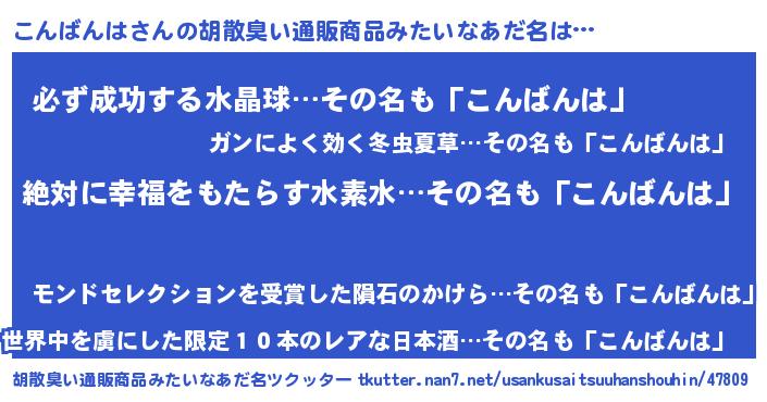 | 意味不明あだ名 | 『永久保存こんばんは』『自称こんばんは』 |