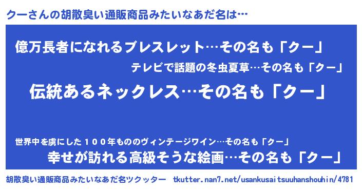 | ピコ太郎風あだ名 | 『クー二郎』『クコ史郎』『ピク三郎』 |