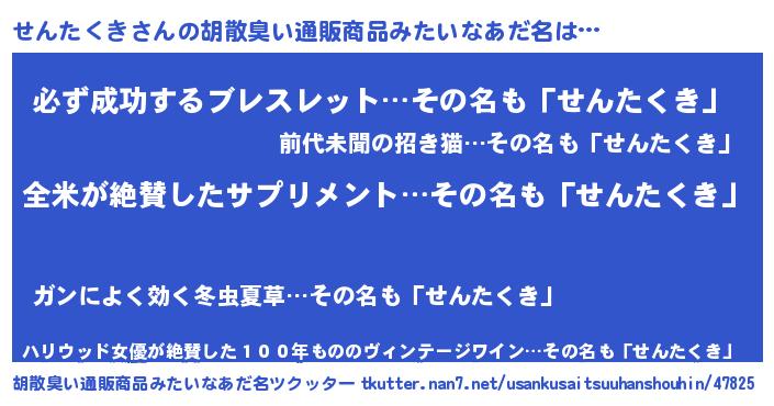 | ヒーロー風カッコイイあだ名 | 『天弓騎士セン』『スーパーセンタクキ』 |