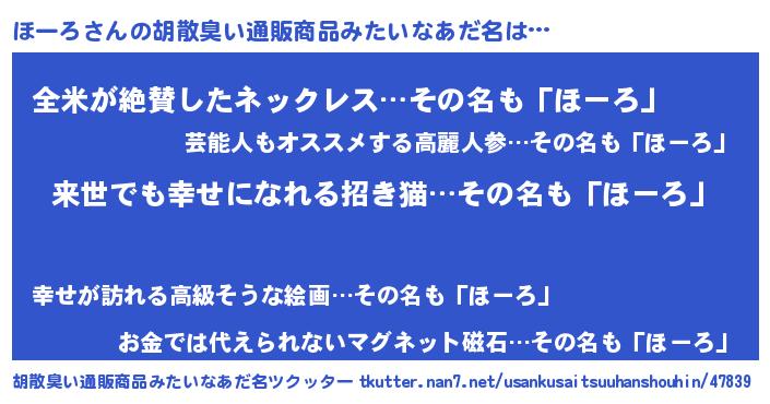 | 意味不明あだ名 | 『永久保存ほーろ』『自称ほーろ』 |