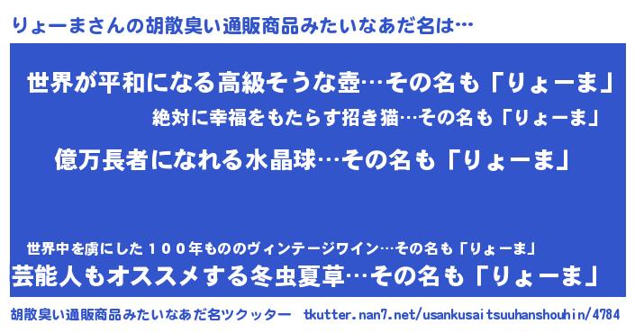 | 男性向けラノベタイトル風あだ名 | 『リョーマアートオンライン』 |
