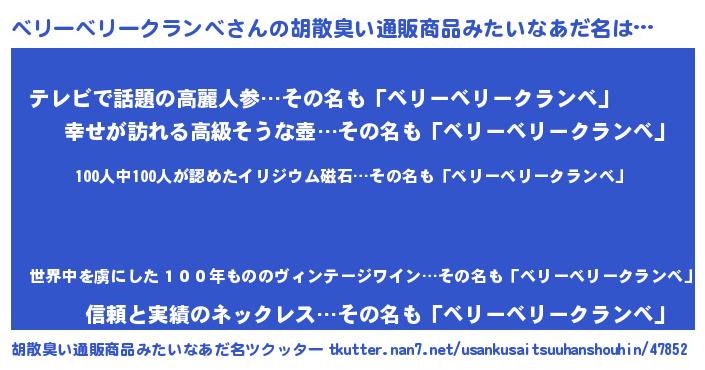 | ヒーロー風カッコイイあだ名 | 『正義の使者ベリーベリークランベ』 |