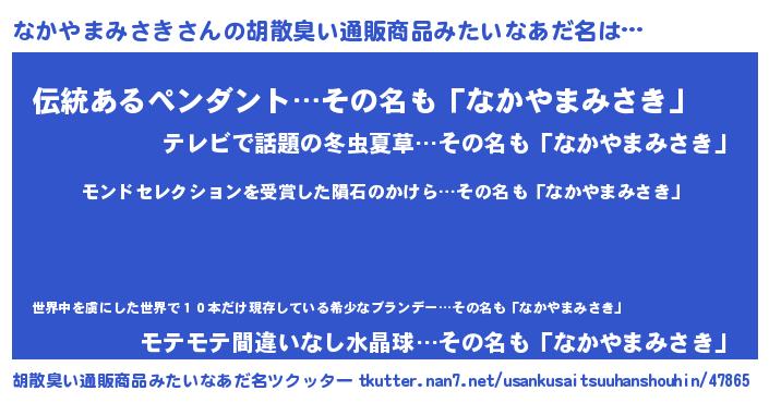 | 男性向けラノベタイトル風あだ名 | 『なかやまみさきに滅ぼされるだけの簡単なお仕事です』 |