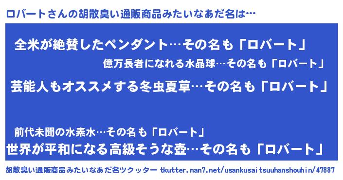 | 意味不明あだ名 | 『自称ロバート』『めかぶ科ロバート属』 |
