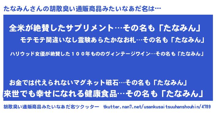 | 意味不明あだ名 | 『住所不定無職たなみん(8歳)』 |