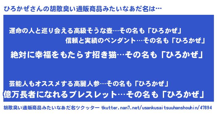 | 意味不明あだ名 | 『永久保存ひろかぜ』『ペロリンひろかぜ』 |