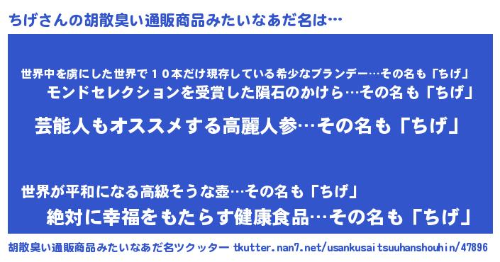 | 女子向けラノベタイトル風あだ名 | 『ちげストレイドッグス』『ちげ恋絵巻』 |