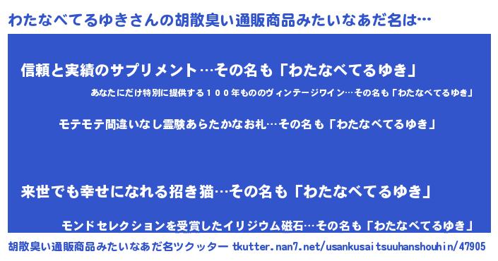 | ポケモン風あだ名 | 『ワタチュウ』『ヒワタナベテルユキ』 |