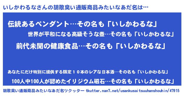 | 意味不明あだ名 | 『永久保存いしかわるな』 |