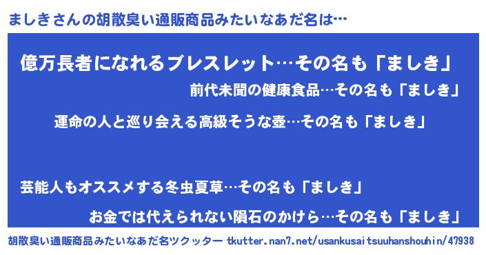 | 意味不明あだ名 | 『ましきフォーエバー』『ペロリンましき』 |
