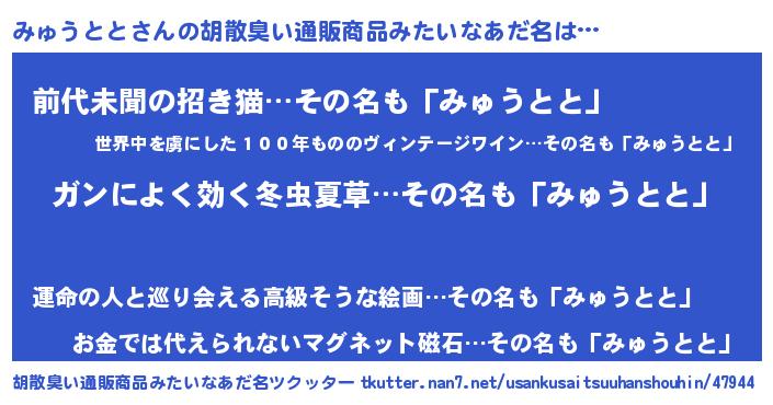 | 肩書あだ名 | 『みゅうとと総統』『みゅうとと校長』 |