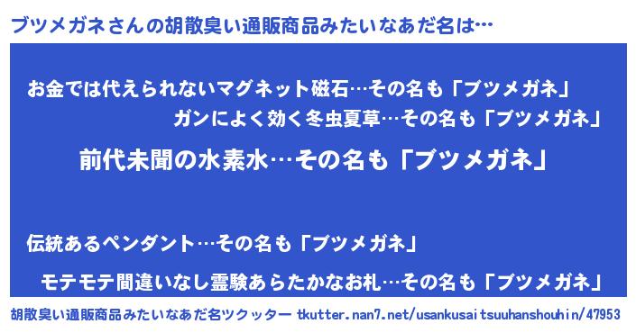 | ヘコむあだ名 | 『ブツメガネ(苦笑)』『ブツにー』 |