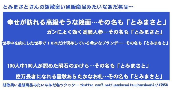 | ヒーロー風カッコイイあだ名 | 『仮面トミダー』『スーパートミマサト』 |