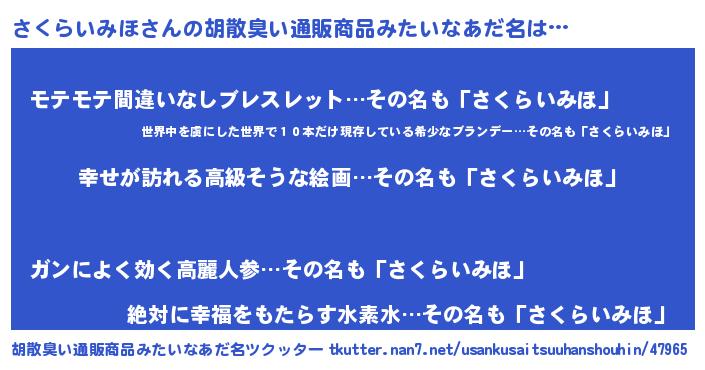 | 恥ずかしいあだ名 | 『さくっちょ』『プリティーさくらいみほ』 |