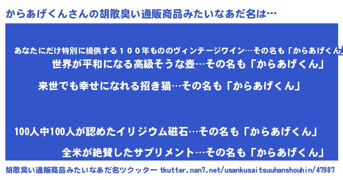 | 欧米人風あだ名 | 『ダルビッシュからあげくん』 |