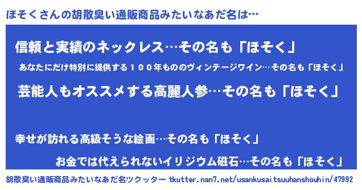 | 意味不明あだ名 | 『自称ほそく』『とにかく怪しいほそく』 |