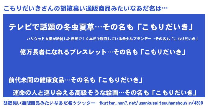 意味不明あだ名 | 『ペロリンこもりだいき』 |