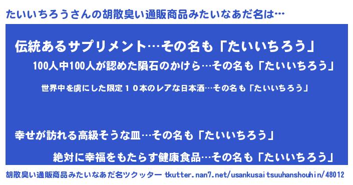 | 意味不明あだ名 | 『住所不定無職たいいちろう(59歳)』 |