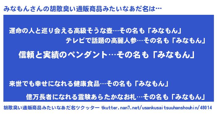 | 意味不明あだ名 | 『とにかく怪しいみなもん』 |