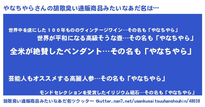 やなちやらさんの胡散臭い通販商品みたいなあだ名をツクッター!