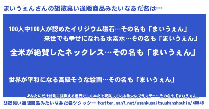 | ヒーロー風カッコイイあだ名 | 『天弓騎士マイ』『正義の使者まいうぇん』 |