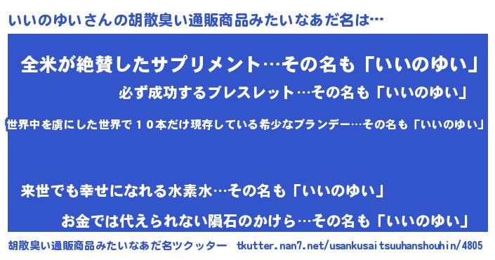 | 意味不明あだ名 | 『住所不定無職いいのゆい(84歳)』 |