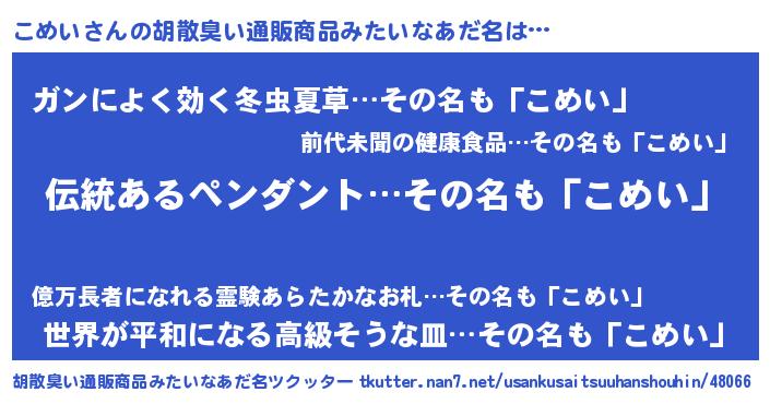 | ヘコむあだ名 | 『こめぷりん』『牛乳』『こめふぇ~』 |