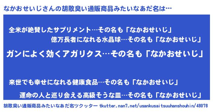 | 意味不明あだ名 | 『自称なかおせいじ』 |