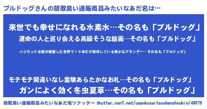 | ヒーロー風カッコイイあだ名 | 『仮面ブルダー』『ネオブルドッグ』 |