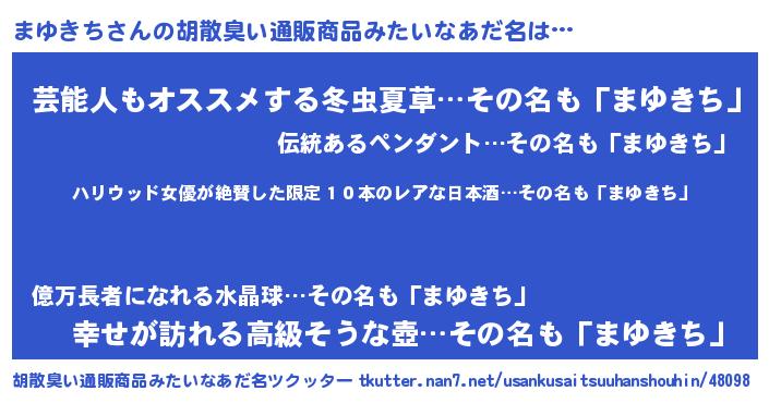 | 意味不明あだ名 | 『住所不定無職まゆきち(62歳)』 |