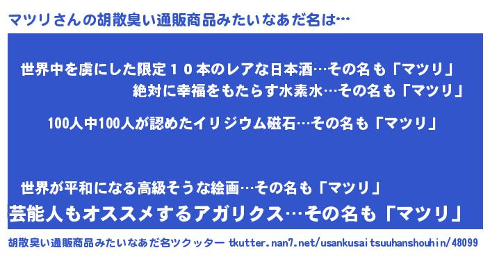 | 意味不明あだ名 | 『眠気覚ましガムマツリ味』『自称マツリ』 |