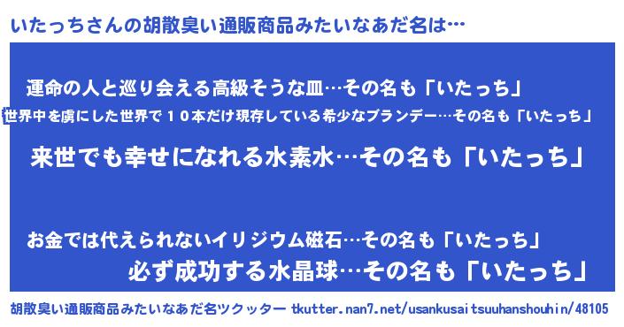 | ヒーロー風カッコイイあだ名 | 『ネオイタッチ』『ウルトラいたっちマン』 |